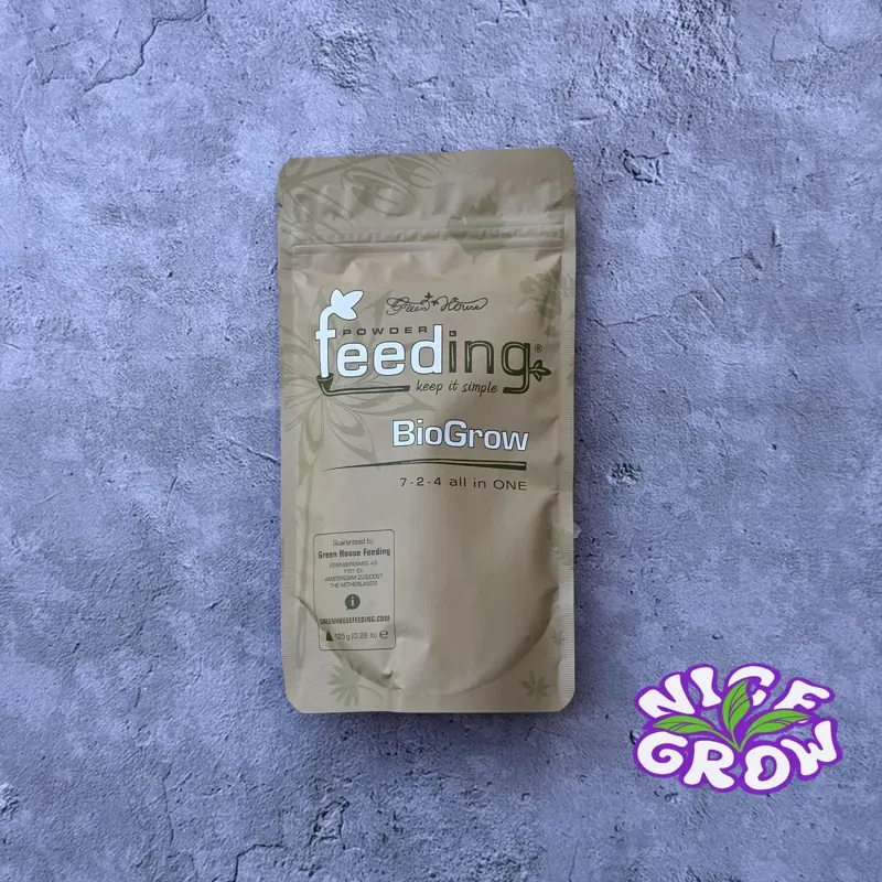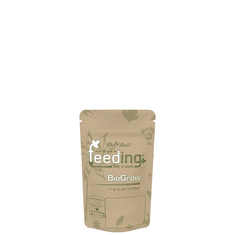Bio Grow es un fertilizante orgánico en polvo diseñado para acompañar la etapa vegetativa de tus plantas, con una fórmula "todo en uno" que combina minerales naturales y materias orgánicas para un crecimiento rápido y saludable. Este producto entrega nutrientes esenciales de forma inmediata y liberación prolongada, asegurando que tus plantas tengan todo lo que necesitan durante alrededor de 8 semanas. Con un NPK balanceado de 7-2-4, es ideal para quienes buscan resultados confiables, tanto principiantes como expertos. Para usarlo, simplemente aplicá 3 gramos por litro de sustrato, mezclando bien para que los nutrientes se distribuyan parejo y la absorción sea eficiente. Recomendamos usarlo durante toda la fase vegetativa para potenciar el desarrollo de hojas y raíces fuertes, asegurando un cultivo vigoroso y preparado para la siguiente etapa. No te compliques con dosis raras, este polvo es fácil y efectivo para que tus plantas crezcan sin drama. fertilizante orgánico, crecimiento vegetativo, NPK 7-2-4, abono natural, cultivo saludable